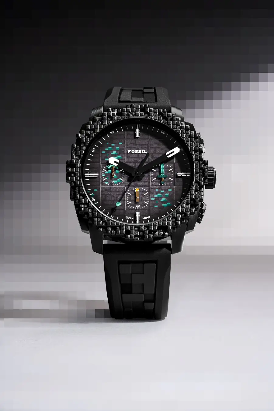 這次聯名系列的重點單品,是來自 FOSSIL 熱銷的 MACHINE(機械) 系列的兩款特製版手錶,讓玩家隨時隨地感受 Minecraft 的樂趣!