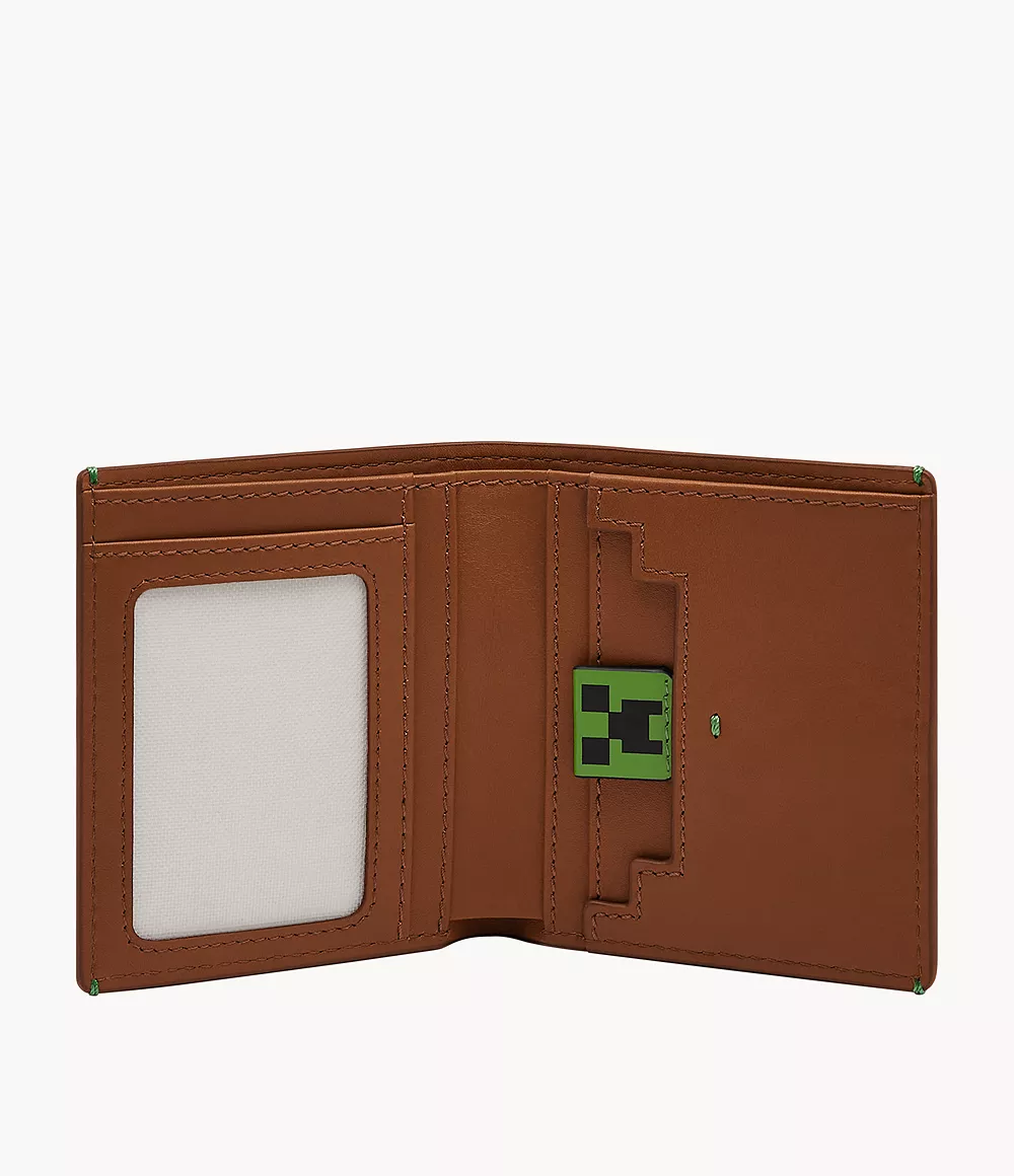 全皮革材質,表面壓印像素紋理,完美重現 Minecraft 的方塊世界!拉鍊頭設計成苦力怕(Creeper) 造型,內部還有透明證件夾,讓你每天都能感受在遊戲中冒險的樂趣!