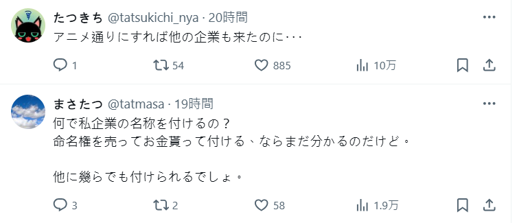 反對派:「一條路的名字竟然是企業名稱,感覺怪怪的…」、「這條路上也有其他店家,這樣合理嗎?」、「如果 Animate 以後搬走了呢?」