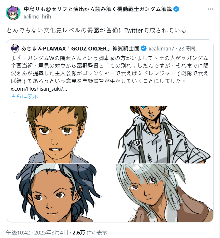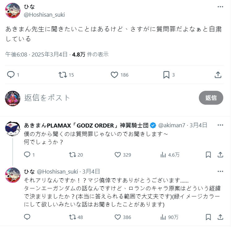 對於安田朗如此縝密的介紹由來,也讓推主ひな大為感動,沒想到居然可以聽到如此幕後的故事,真沒想到在 X 上碎嘴可以得到如此棒的回饋。