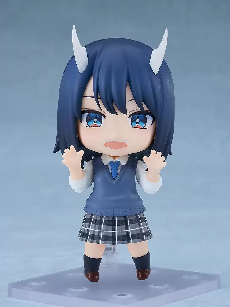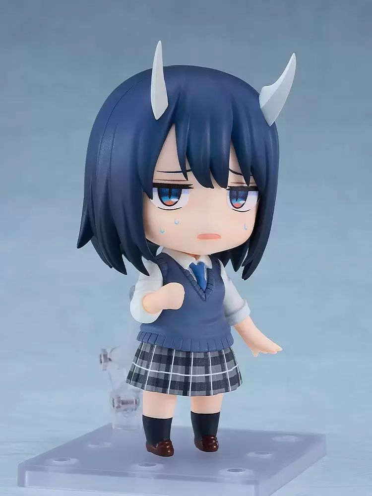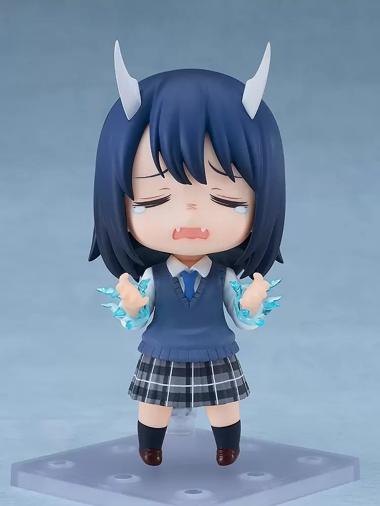 「黏土人 青木瑠璃」,尺寸約高 10 公分,以 Q 版還原瑠璃明明頭上長出龍角卻還是乖乖穿上制服去學校上學的造型~特色的眼睛也使用豐富的色彩再現,嘴裡的的小虎牙(龍牙?)也超級可愛!表情零件附有張嘴的「笑臉」、不知所措又很無奈的「哭泣臉」以及滿頭大汗的「膽怯臉」三款可以替換,配件則是有「飯糰」、「火焰特效零件」、「電氣特效零件」等,搭配豐富的替換手勢,賞玩瑠璃充滿奇幻的溫馨日常!