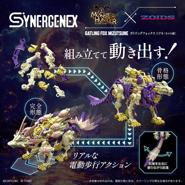 由日本玩具公司 TAKARA TOMY 旗下高階玩具品牌 T-SPARK 推出的外部聯名玩具『SYNERGENEX』系列,正式發表了與人氣電玩《魔物獵人》合作的第二彈商品「機槍狐狸 Mitsune」預計於 2025 年 10 月發售的消息。