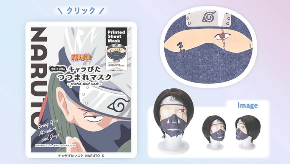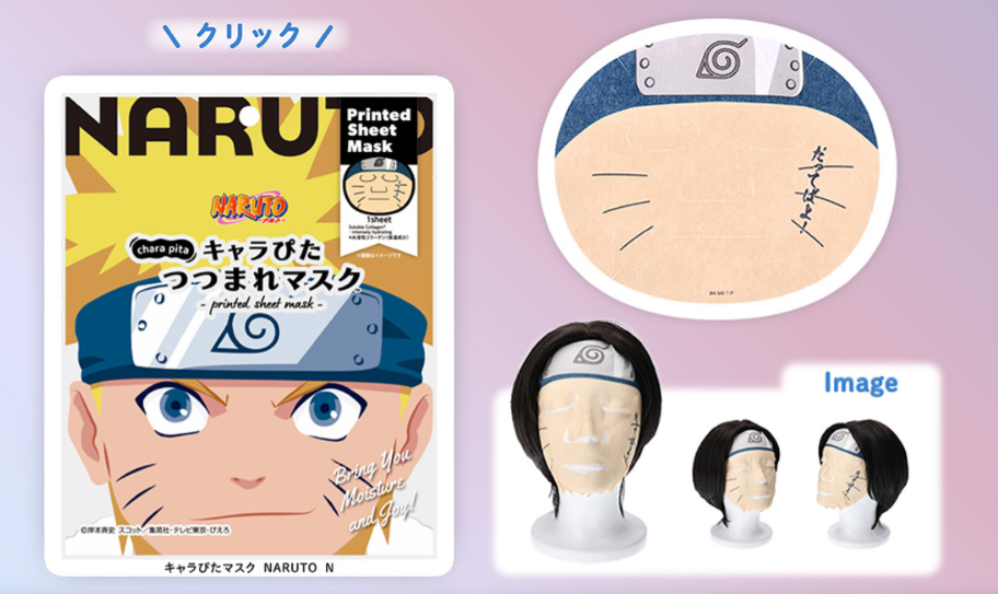 日本萬代公司旗下的美妝品牌「Creer Beaute」,旨在將熱門動畫角色與美妝商品結合~這次發表了以《火影忍者》為主題的最新商品:「Chara pita角色印刷面膜系列 NARUTO 漩渦鳴人/卡卡西」兩種款式,參考售價為每包 660 日圓,預計於 2025 年 04 月發售。