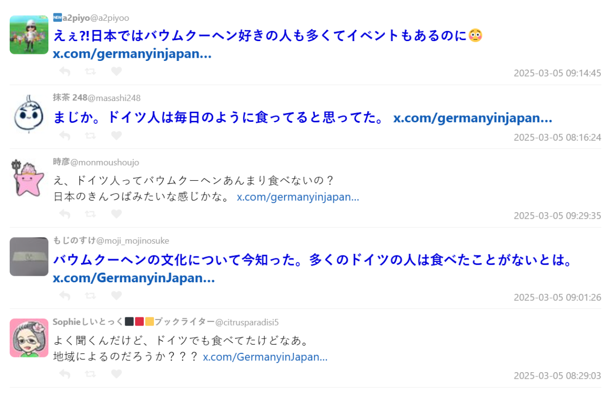 這也讓不少日本網友驚訝,他們都知道起源於德國,沒想到居然德國人沒有那麼常吃,甚至還有人說 : 「我還以為德國人每天都在吃年輪蛋糕呢!」