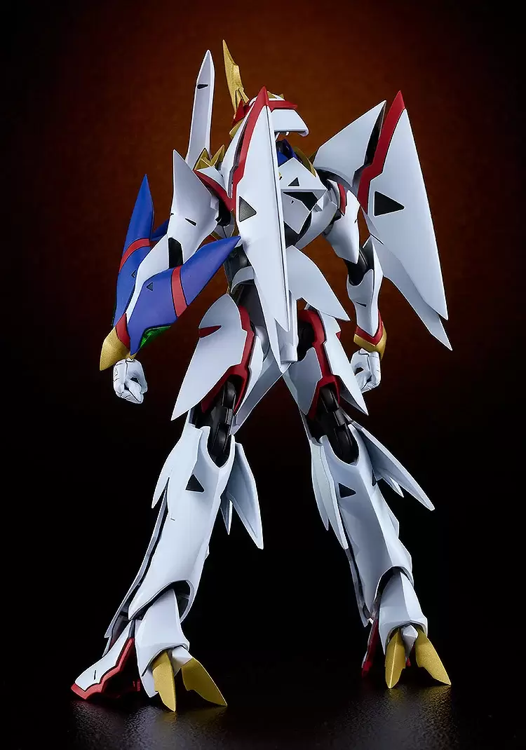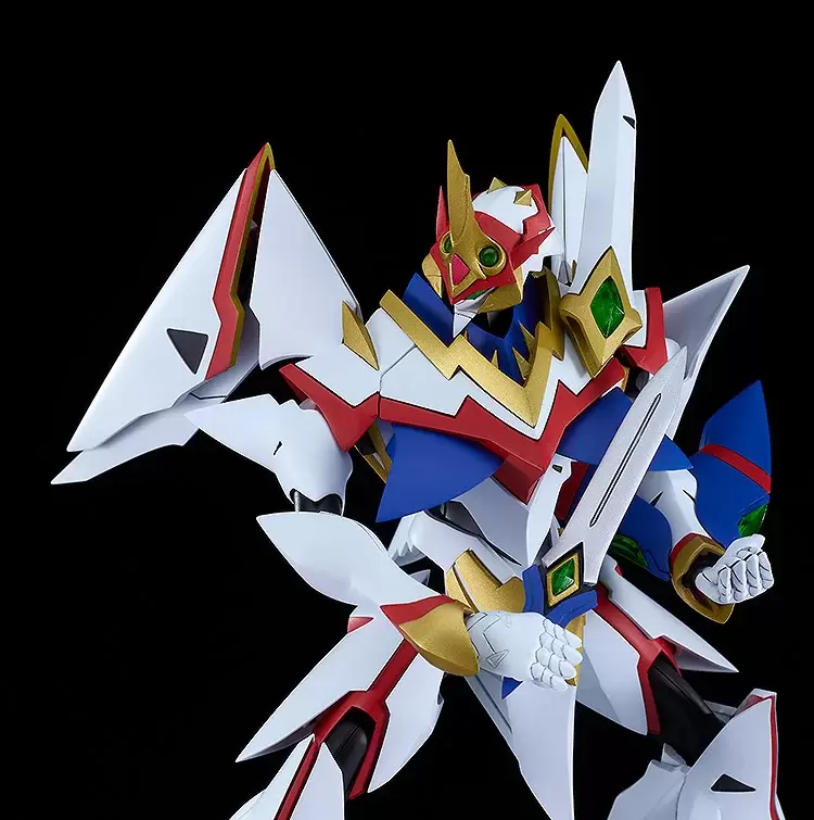 「MODEROID 焰火皇帝」組裝模型,組裝後全高約200mm,透過豐富的成型色、透明件、已塗裝完成零件及貼紙,組裝即可重現劇中的帥氣造型!仔細還原裝在左肩刀鞘上的「凱撒五刃劍」,可將握柄部分從刀鞘中取下,搭配長劍/短劍狀態的樣式,各關節設計為可動式,可以靈活地賞玩不同的戰鬥姿勢;背後的機翼展開機關也徹底重現,並可替換長短機翼!另外附有左臂的透明零件,能夠重現「鑽石之箭」的裝備狀態。