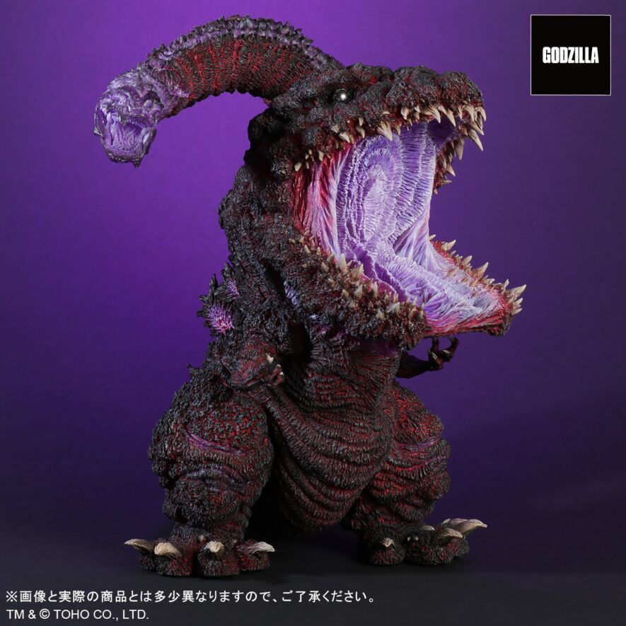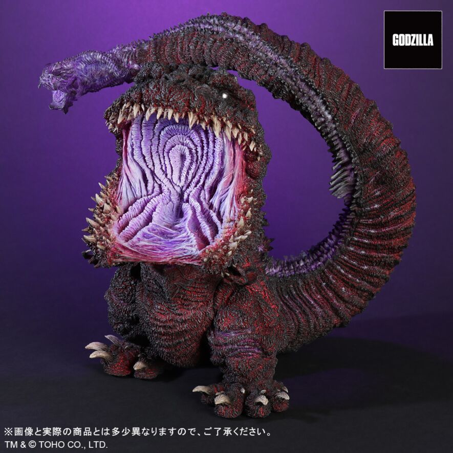 「GIGANTIC × DEFOREAL 哥吉拉(2016)第4形態覺醒Ver.」基於 2022 年發售的一般版修改而來,以新規造型與塗裝再現張開血盆大口後極為密集的口腔組織、口部與尾巴準備發射熱線時散發的紫色光芒,在全高約 30 公分的大型尺寸下呈現比一般 DEFOREAL 版本更豐富的細節造型。