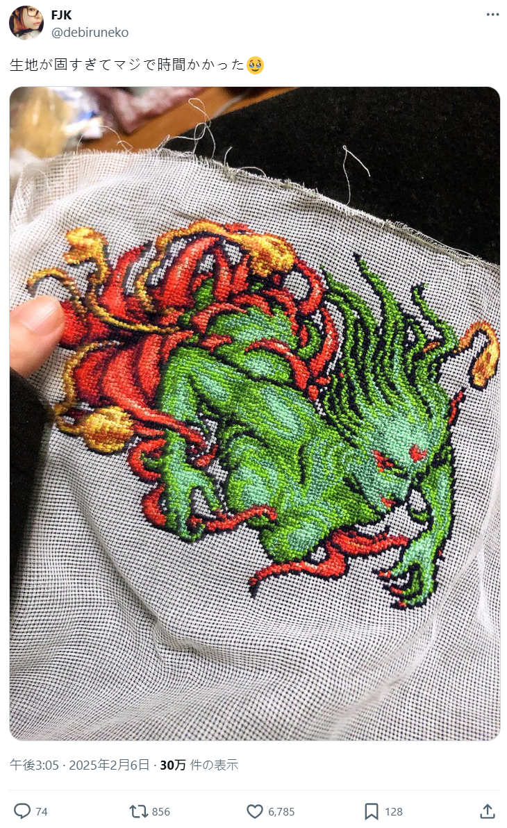 近期日本 X 上,有位推主用刺繡製作《Final Fantasy III》中的終極 Boss「暗黑雲」(くらやみのくも),成品超高的還原度讓網友驚呼,尤其這款遊戲讓不少人回憶起童年記憶,成為熱門話題。