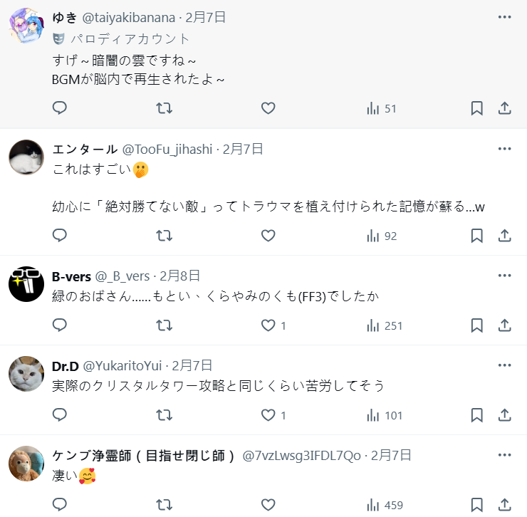 製作的品質讓人驚豔在 X 上受關注後,不少 FF 老玩家紛紛表示:「這品質太厲害了!」、「雞皮疙瘩都起來了!」同時,也有許多玩家回憶當年遊戲時的感受:「波動砲真的超難躲!」、「這畫面一出來,我腦內 BGM 直接響起!」、「超懷念,當年卡關好久…」,果然當年的破關回憶都歷歷在目阿 XD。