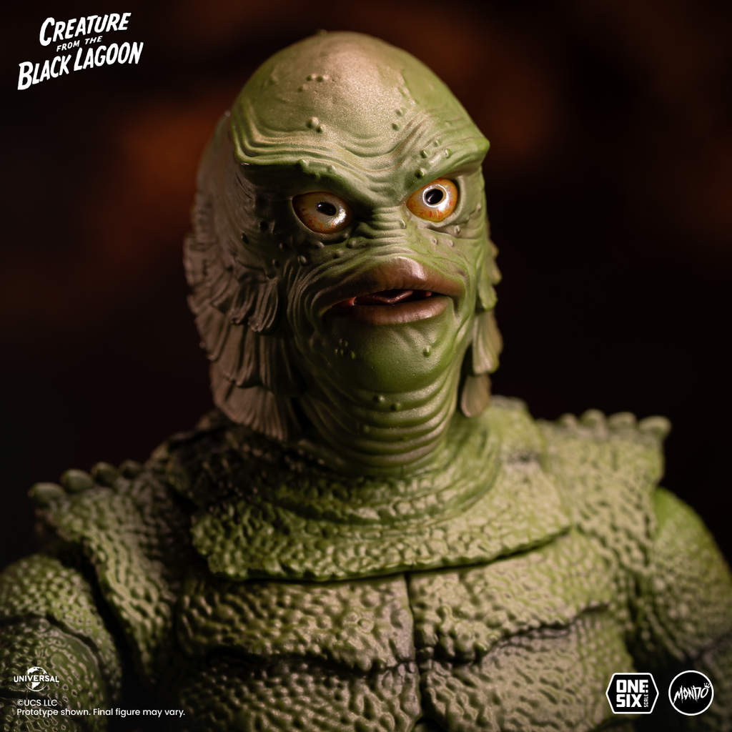 本次的半魚人1/6比例可動人偶將他在電影中的經典形象立體化,雕刻出電影中特效皮衣的造型細節,以包膠無縫的身體設計還原極為真實的紋理,鱗片的質感、臉部的皺紋也都透過塗裝精緻再現!