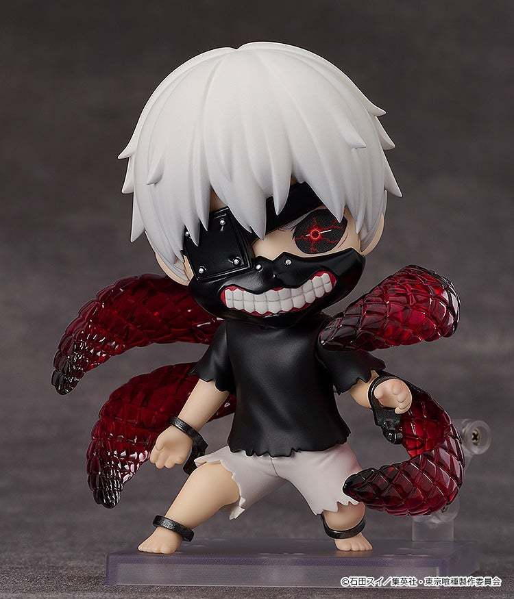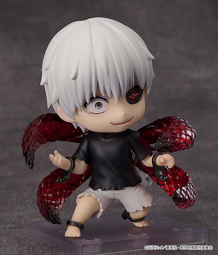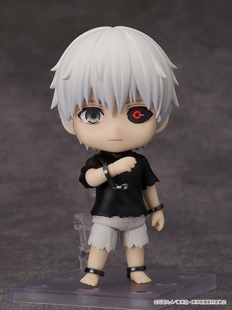 本次的黏土人金木研高約10公分,採用的是動畫第一季第12集金木覺醒後的姿態,在可愛的比例下還原他標誌的白髮、破損的衣服等細節,表情附有嚴肅臉、一般臉兩種選擇,一邊正常、一邊赫眼的造型也都得到細緻還原!配件部分還附有附面具的瀏海配件以及彩透材質打造的赫子,可以搭配折手指等手腳替換件再現他反殺壁虎時的魄力身姿!