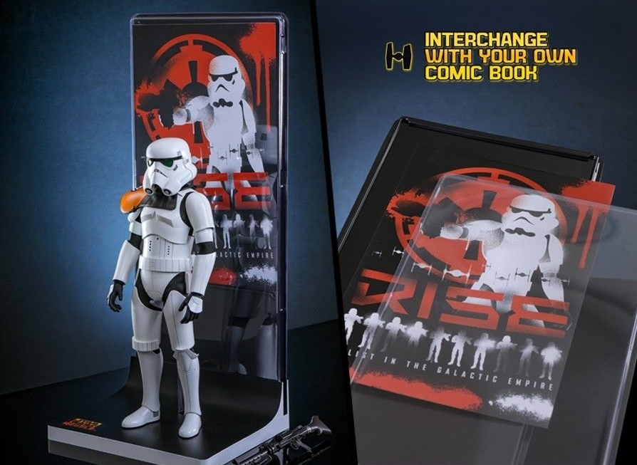 配件部分收錄有多款手部替換件以及一把爆能步槍,提供不同於一般風暴兵的強大火力,如果有點預算的話就可以購買複數的風暴兵搭配小隊指揮官擺設出小隊出任務的場景!底座部分同樣承襲HONŌ STUDIO系列特色,附有收藏漫畫的展示架,如果各位玩具人有收藏星際大戰主題漫畫的話就能夠一同陳列,呈現像是角色從漫畫中走出來的感覺!