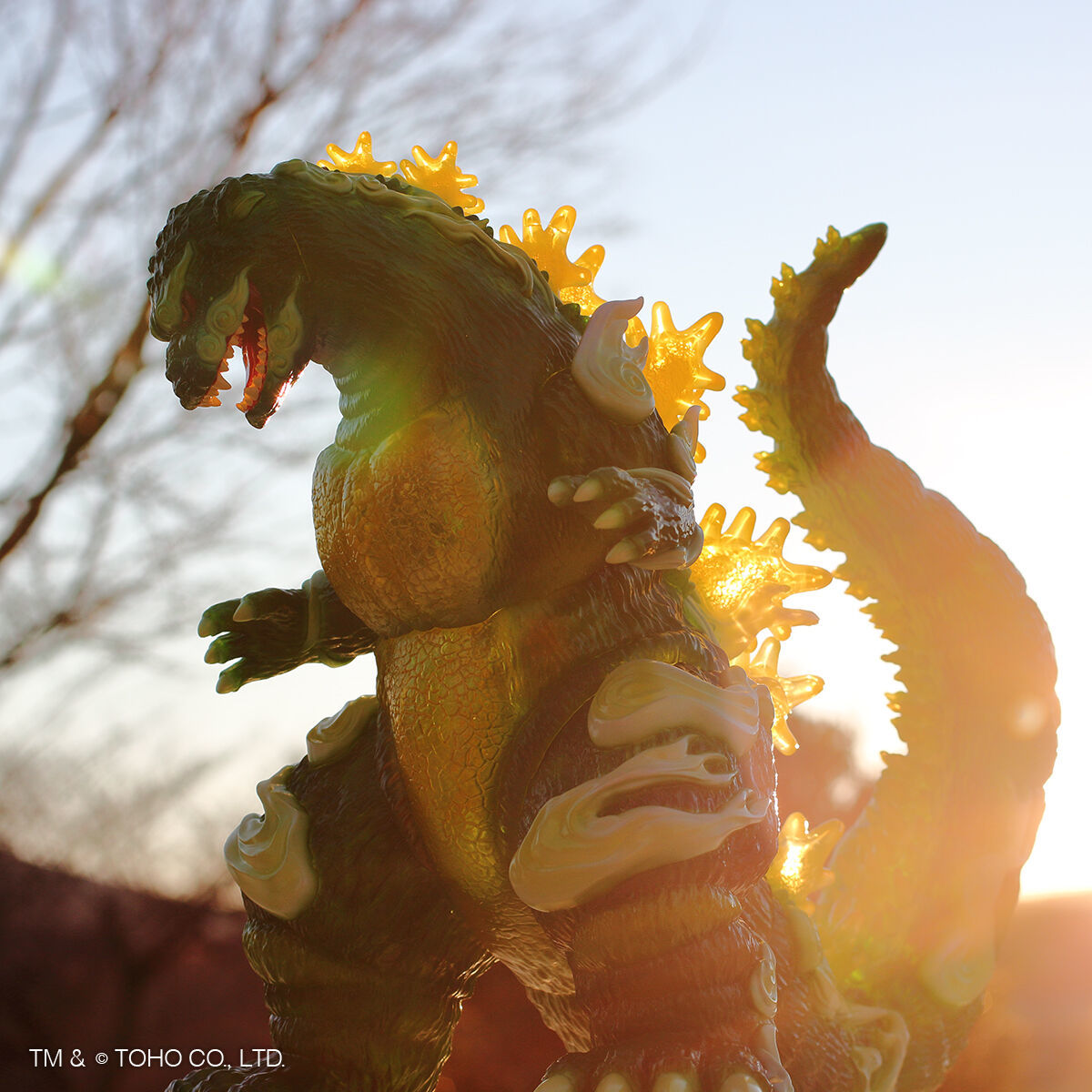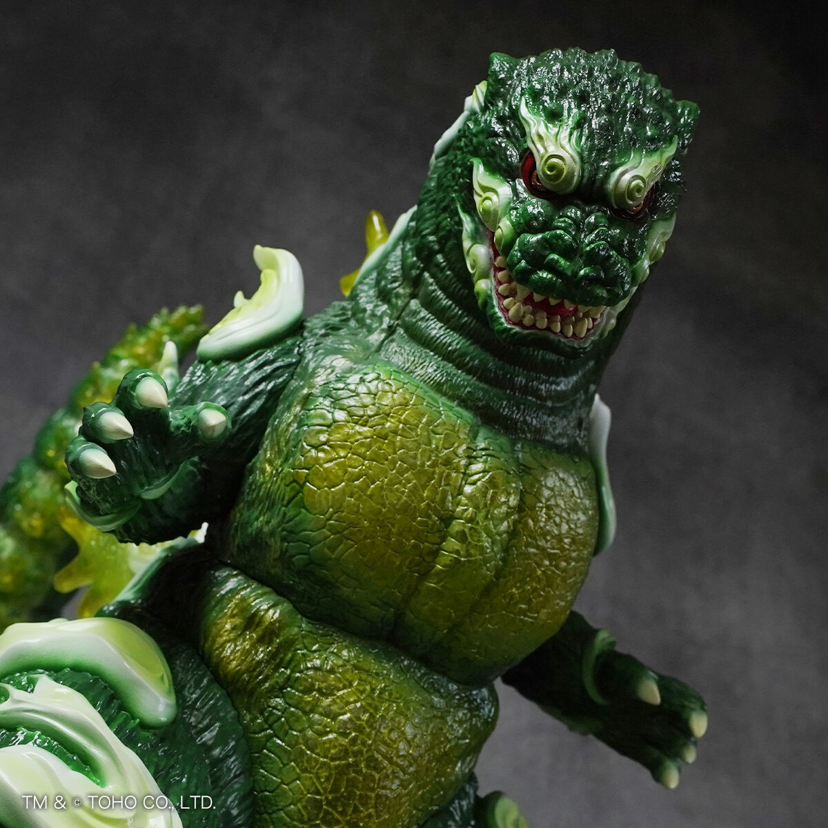 尺寸約高 33 公分,整體彷彿直接從畫卷中走出來,軟膠獨特的精緻色彩營造出滿滿的日式氣息,並換上鮮豔且質感的翠綠色,哥吉拉如苦瓜般粗糙的皮膚,在細膩刻劃的紋理下看起來鮮脆可口(?);與火紅的眼睛和嘴部形成鮮明的對比,更強調銳利的目光!身體繚繞著白綠色的祥雲,讓人感受到清新的流動感,施以漸層色的透明材質,讓背鰭透出脆嫩剔透的黃綠色光澤,營造出非常不一樣的特殊風格!