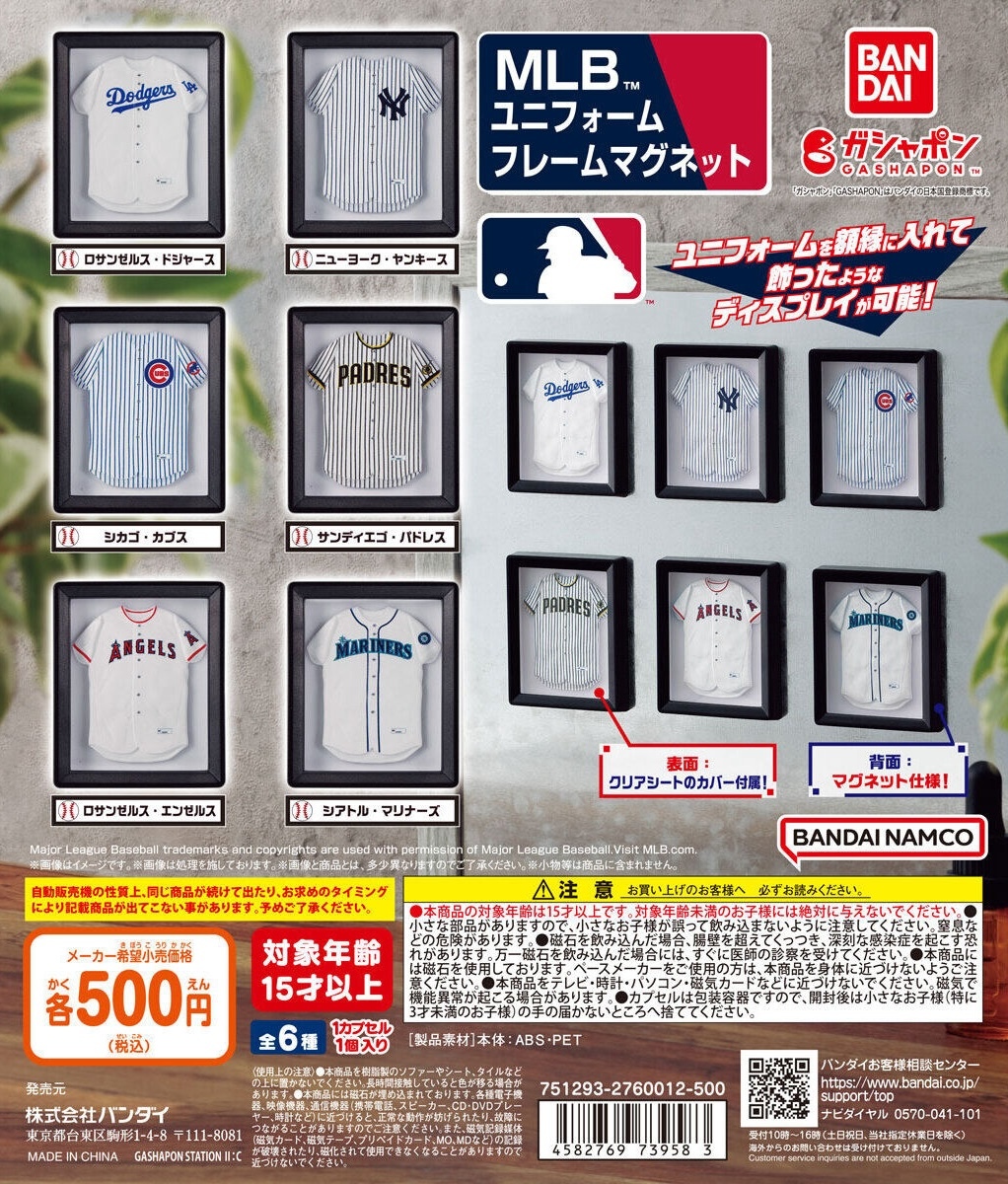 萬代公司轉蛋事業部GASHAPON與美國職業棒球大聯盟合作推出主題新品——「MLB™裱框球衣磁鐵」轉蛋,參考售價為每轉500日圓,預計於2025年03月第三週開轉!