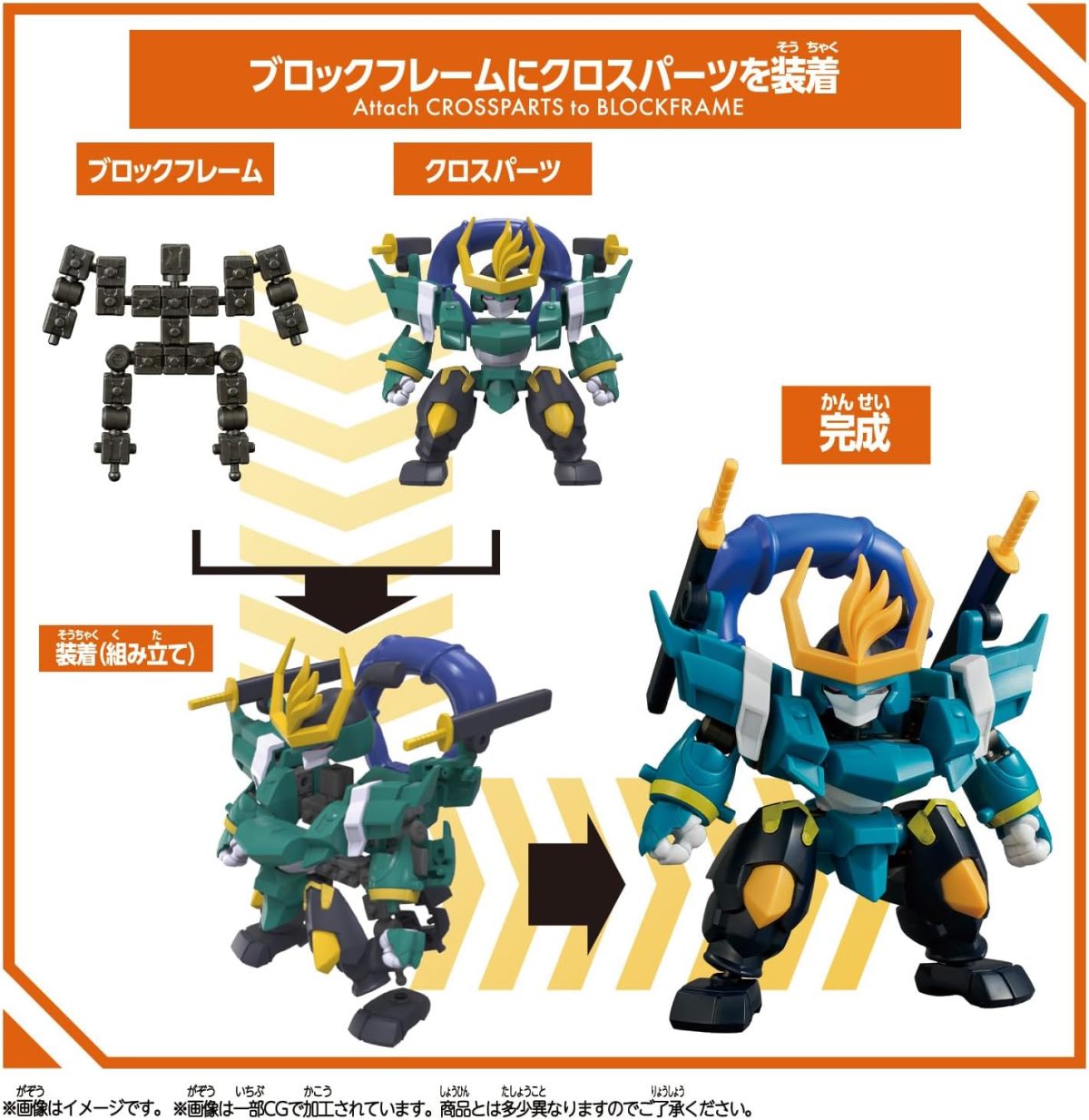 『BLOCKCROSS』由系列共通規格的「BLOCK骨架」結合再現各機體形象的「CROSS零件」構成,無需膠水等工具就能像組裝模型般簡易完成機體。透過自由搭配各機零件的「CROSS BUILD」玩法就能發揮創意組出你的原創機體,此外「BLOCK骨架」還具備換裝與擴充性,能使用多組骨架改變形態,組成高頭身骨架、低頭身骨架、四足步行骨架...等多種玩法!