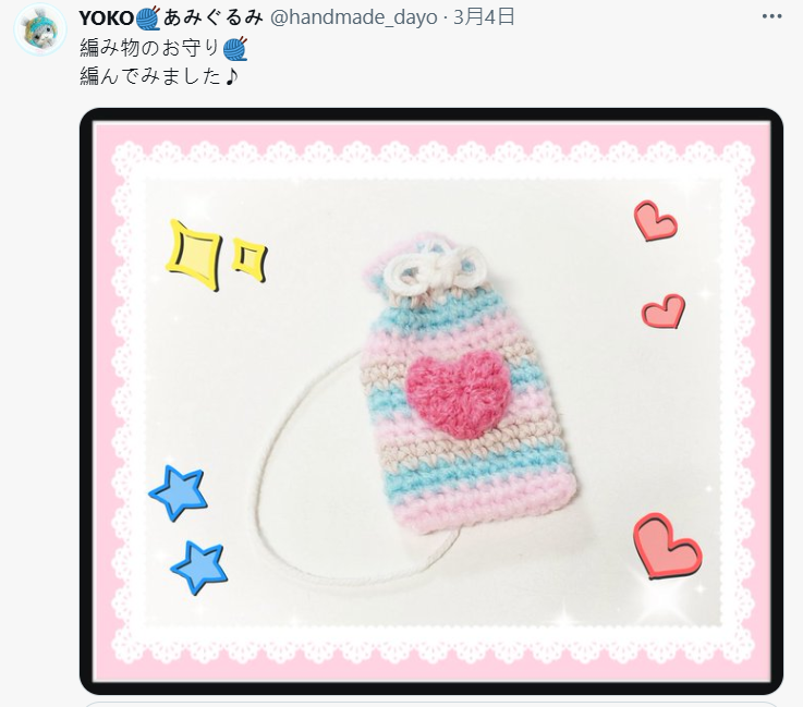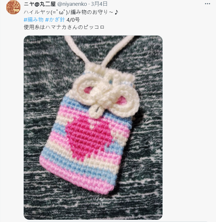 ユーフォ表示,自己一看到作品就覺得「好像可以編出來」,於是立刻動手,沒想到短短 4 小時 就完成了。這款手掌大小、色彩繽紛 的編織御守馬上引起瘋狂討論,發文瞬間突破 25.2萬次瀏覽,網友紛紛留言:「太可愛了~」、「也太神速了吧!」、「手好巧啊!」,甚至還有人說:「我也來試試看好了!」