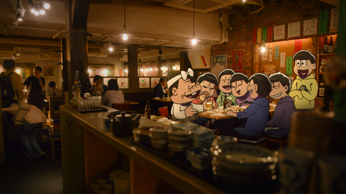 阿松六胞胎長大後跑去居酒屋小酌,沒想到竟然和妙老爹(《天才妙老爹》的爸爸)坐在隔壁!雙方越聊越起勁,話題天馬行空,最後阿松忍不住感嘆:「跟不認識的人喝酒,意外的蠻好玩的嘛!」這種無厘頭的氛圍,完全就是這些角色會做的事(笑)。