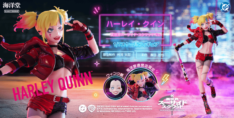 日本模型公司海洋堂正式公開了人氣動畫《異世界自殺突擊隊》主題的新商品——「哈莉·奎茵」1/7 比例塗裝完成品模型的販售資訊,參考售價為22,000日圓,預計於2025年11月發售!