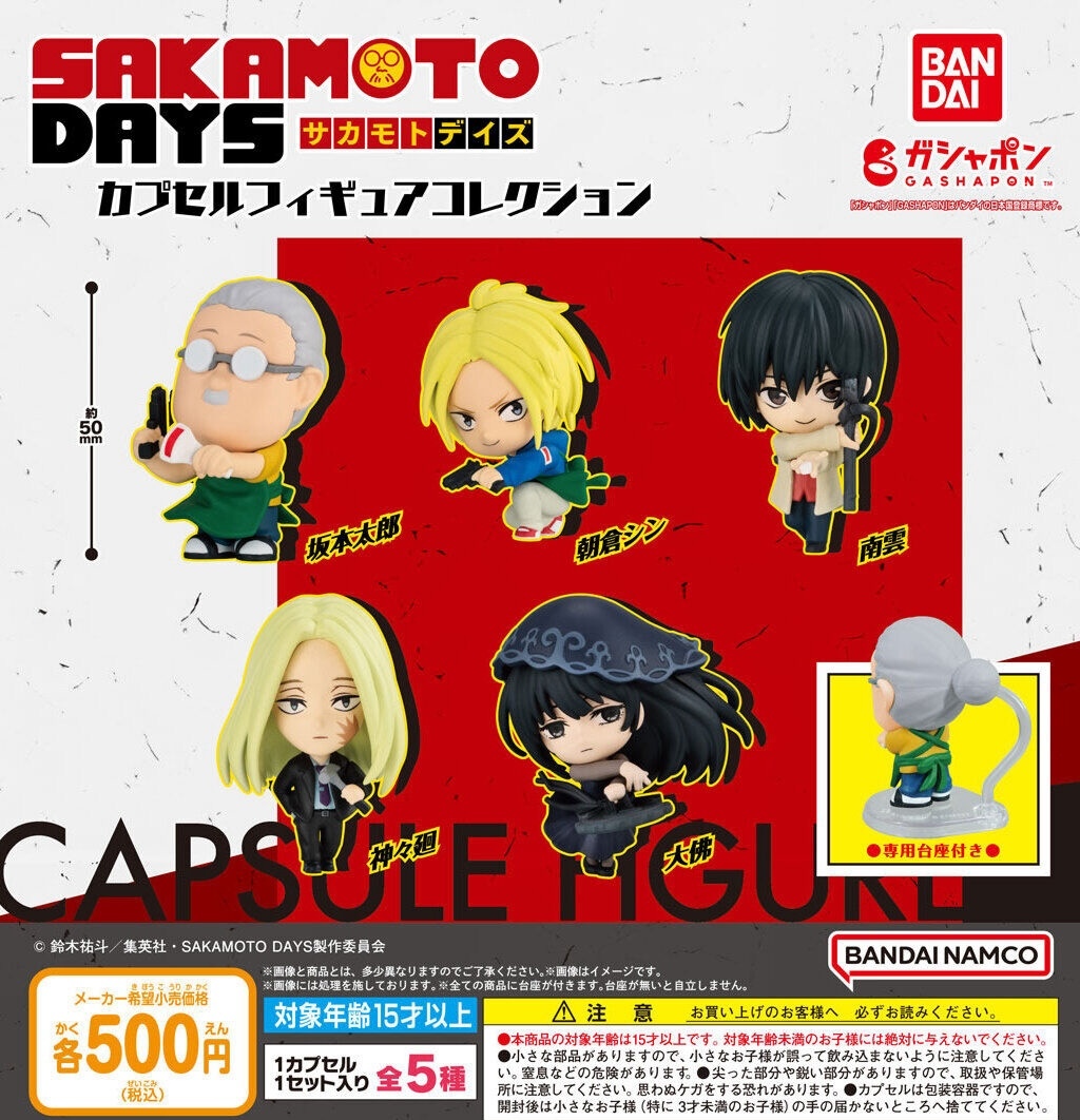 萬代公司轉蛋事業部GASHAPON將推出人氣動畫《SAKAMOTO DAYS 坂本日常》主題的新商品——「SAKAMOTO DAYS坂本日常 角色模型收藏」轉蛋,參考售價為每轉500日圓,預計於2025年03月第五週開轉!