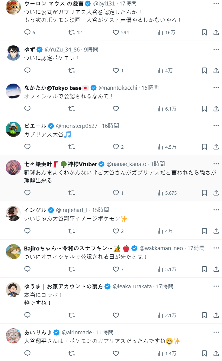 甚至連「烈咬陸鯊大谷」( ガブリアス大谷 )都一度登上趨勢熱搜,讓整個話題熱度爆表!