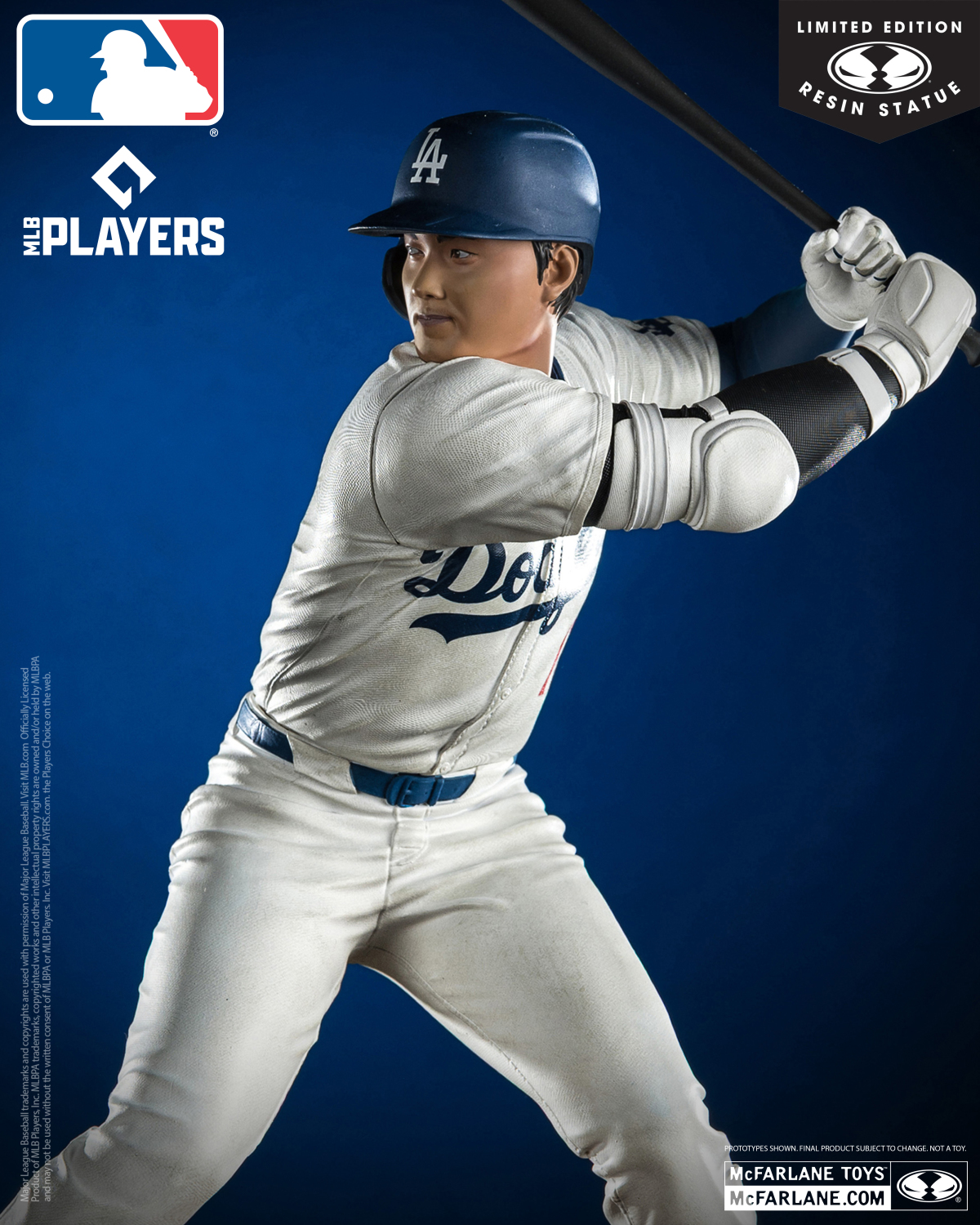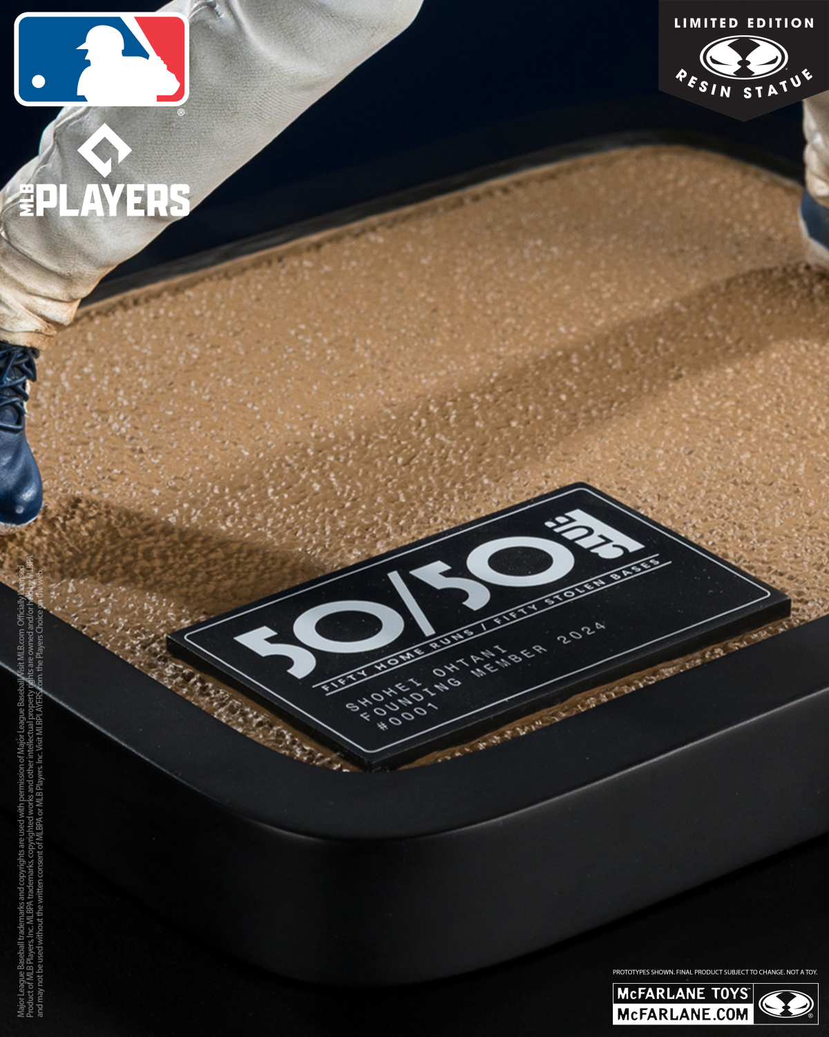 麥法蘭『洛杉磯道奇 大谷翔平』1/6 比例限量版樹脂雕像,試圖重現大谷翔平創下 50 轟與 50 盜紀錄的經典時刻!以 12.5英吋的份量尺寸打造,逼真的刻畫翔平穿著洛杉磯道奇隊服的模樣,雖然臉有點看不出來這是哪位,但標誌性的 17 號球衣、高大壯碩的身材,目光如炬地準備打擊的姿態非常帥氣;在球鞋與褲管等處施以沾有紅土的塗裝,在底座上更是有 50-50俱樂部的銘牌,別具收藏意義!