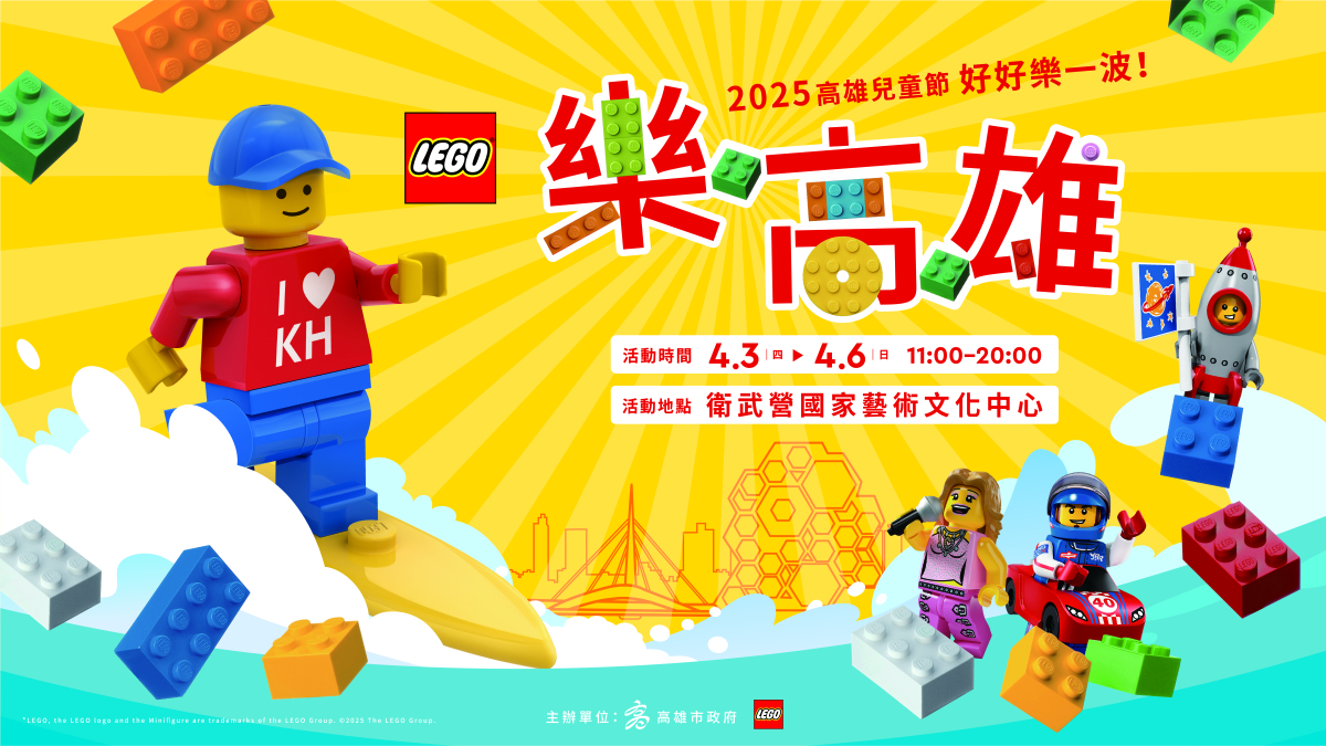 台灣樂高與高雄市政府將於2025年4月3日至4月6日,於高雄衛武營國家藝術文化中心南廣場首度打造「樂高雄」體驗活動,現場除了巨型衝浪造型樂高人偶,更規劃三大關卡:「樂高雄牆」由民眾運用積木共創拼砌出創意;邀請大眾化身為樂高賽車手體驗「玩樂發車」;「樂高雄塗鴉」邀請指定學校的孩子為在不同高雄景點的小樂著色,帶塗鴉紙至活動現場即有機會兌換限量小禮物。不僅如此,還有與活動現場的小樂拍照打卡即可體驗扭蛋的活動,一起找找小樂在哪裡!