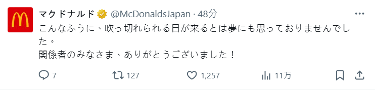 連麥當勞官方 X 都發文說從沒想過可以重現「吹 っ 切 れ た」梗,真的是夢想實踐,看來日麥員工真的有老 nico 民阿 www。