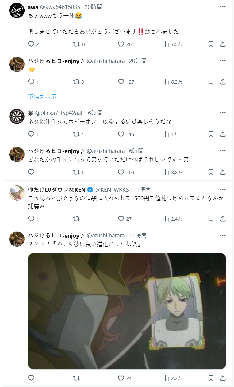 原 PO 也沒想到居然真的找得到對方,對他的創作也讚賞真的有趣,亦有網友說居然二手店才賣 1,500 日圓,應該可以更高吧 XD。不過製作的ハジけるヒロ表示不在意,自已想作還能再來,當初也是隨意給店家收的。