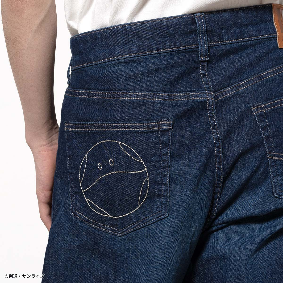 這次採用以鋼彈中的人氣角色「哈囉」為主題打造,包含前方口袋、後方臀部的口袋跟皮標都有哈囉的圖案。