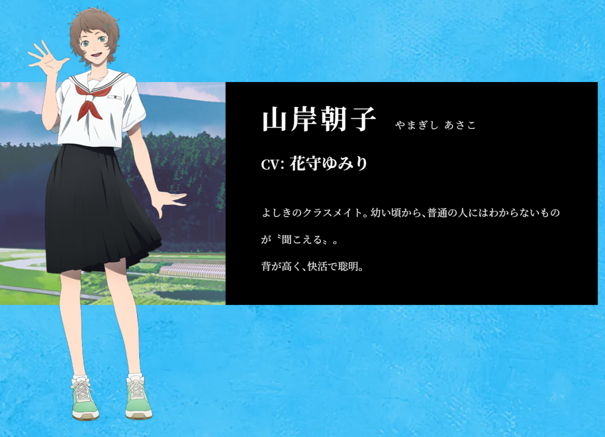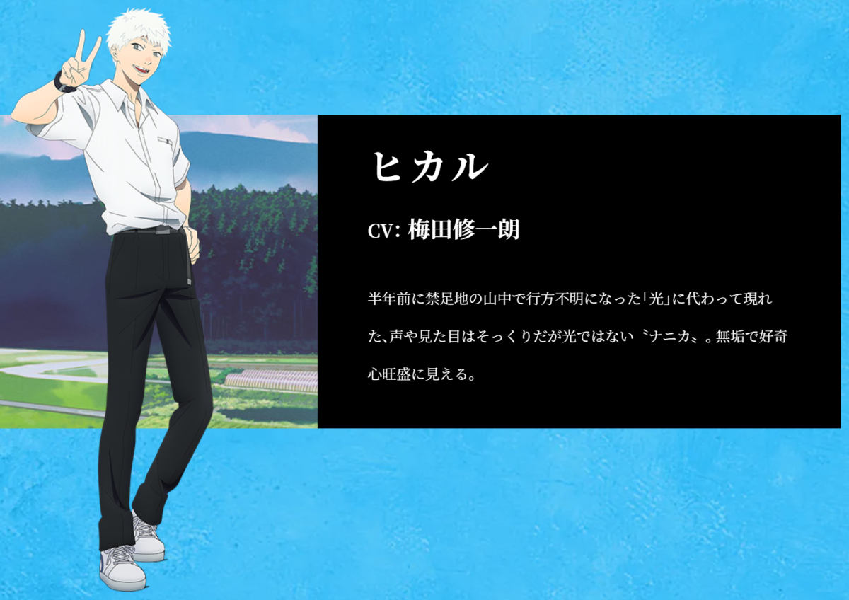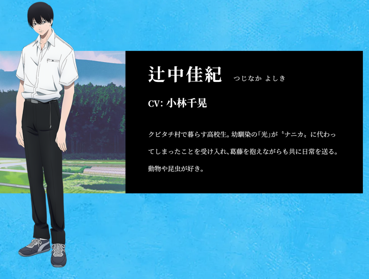 聲優部分也一併公開,包含配音主角辻中佳紀為小林千晃負責,光則由梅田修一朗配音。另外山岸朝子(CV:花守由美里)、暮林理惠(CV:小若和郁那)與田中(CV:小林親弘)也都在本次活動公布。