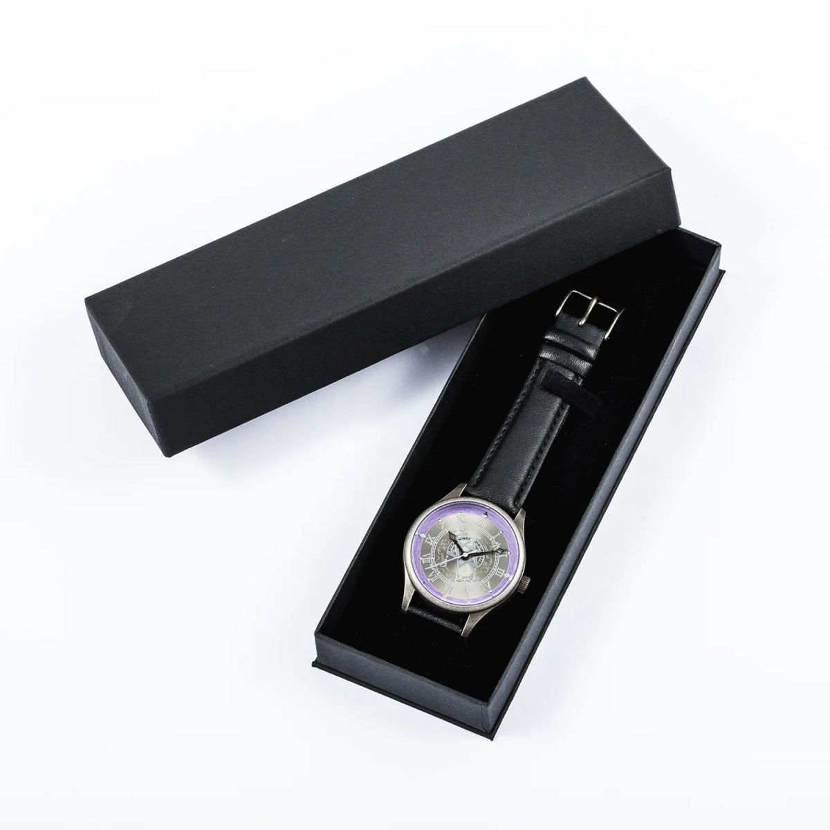 設計靈感來自主角伊蕾娜,以紫色為基礎打造。錶盤中央大膽地放上了象徵魔女身份的胸針,讓人一眼就能看出這是一款專屬魔女的腕錶。環繞整個錶盤的,是與伊蕾娜從媽媽那裡得到的帽子相同的緞帶圖騰。此外,錶盤上還融入了小說《魔女之旅》特色的裝飾,讓人每次看見它,都能回想起當初翻開書頁時的悸動。