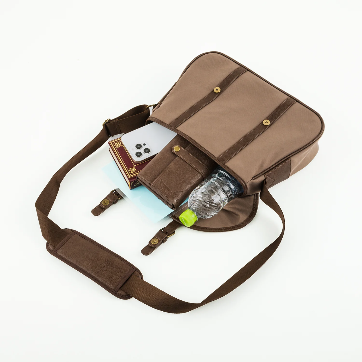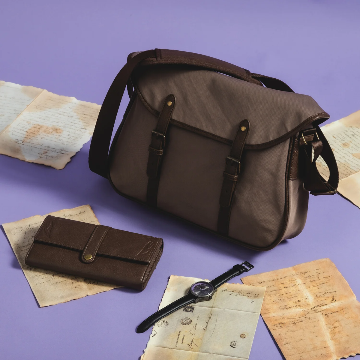 設計靈感同樣來自主角伊蕾娜,包款採用沉穩內斂的配色,與伊蕾娜旅途中見過的異國風景相得益彰。側邊點綴了象徵魔女身份的胸針圖案。內襯的設計彷彿訴說著伊蕾娜在旅途中遇見的各種人事物,讓人回想起那些美好的回憶。像是莎耶的項鍊、艾絲黛兒的懷錶、瑟琳娜的匕首,都是她旅途中的回憶。容量也寬大充足,作為出外旅行使用也十分便利!