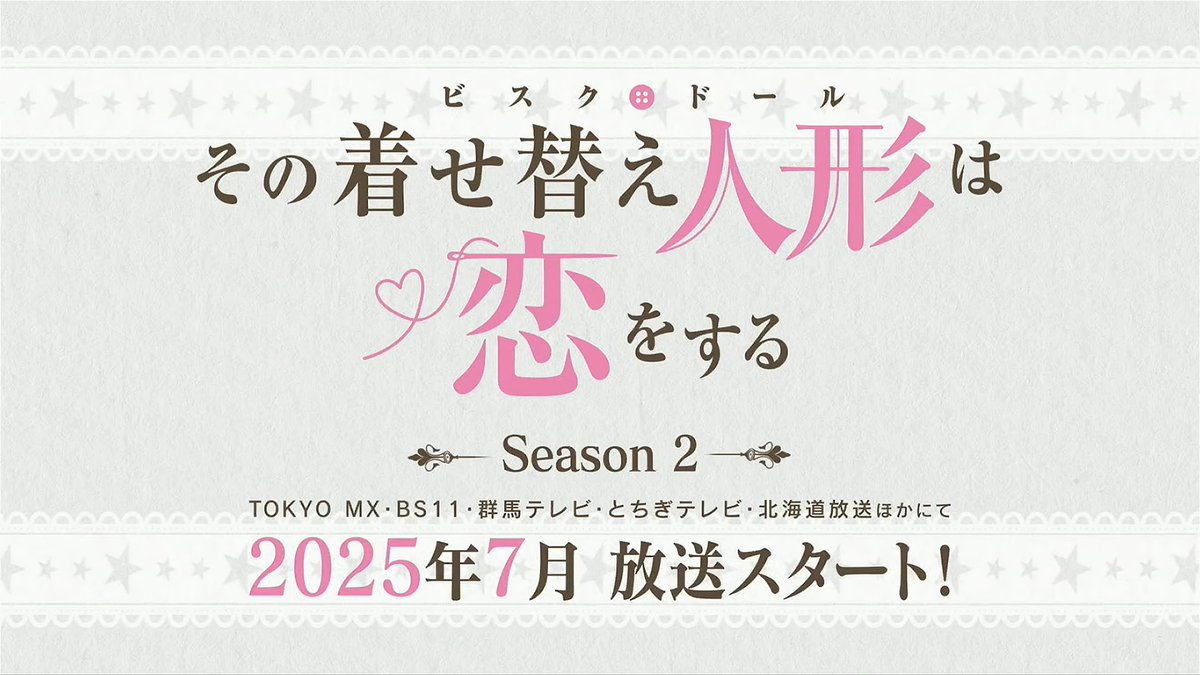 今日 ( 3/22 ) 在 AnimeJapan 2025 的活動上,官方正式公布《戀上換裝娃娃》第二季電視動畫將於 2025 年 7 月開播,並釋出收錄第一季內容的 Memory PV。