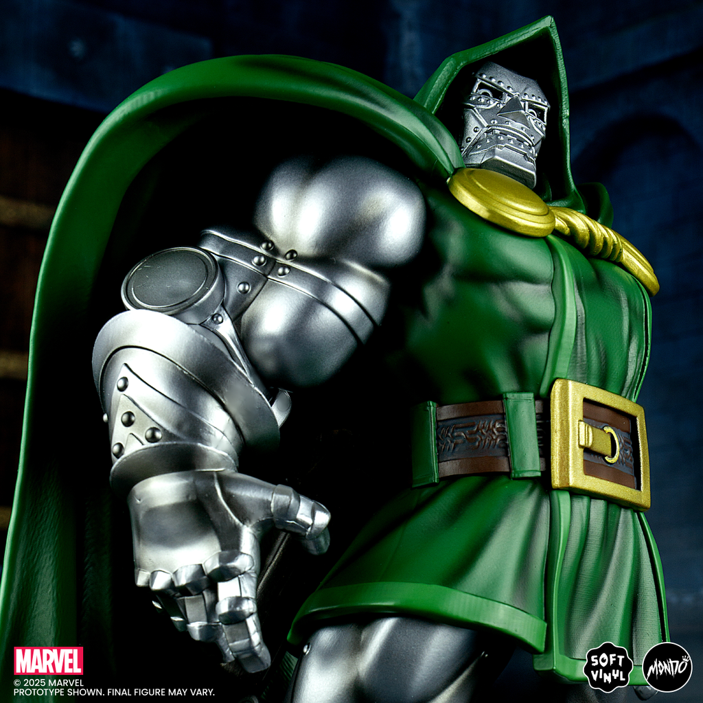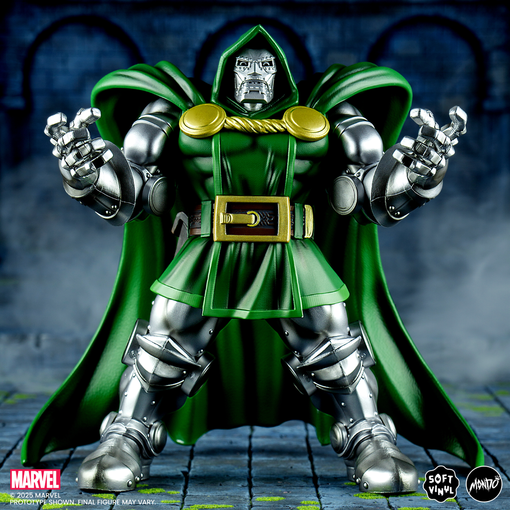 本次的末日博士軟膠玩具高約25.4公分,以風格化的手法展現他在漫畫中的模樣,為他打造了極度壯碩的身形,雕刻還原了標誌性的綠色長袍以及銀色鎧甲上的細節,以金屬漆噴塗還原鎧甲閃亮的銀色,並部分加深長袍上的陰影讓整體看起來更具威嚴!眼睛部分更製作成了向下俯視的角度,展現他身為君王居高臨下的氣場!