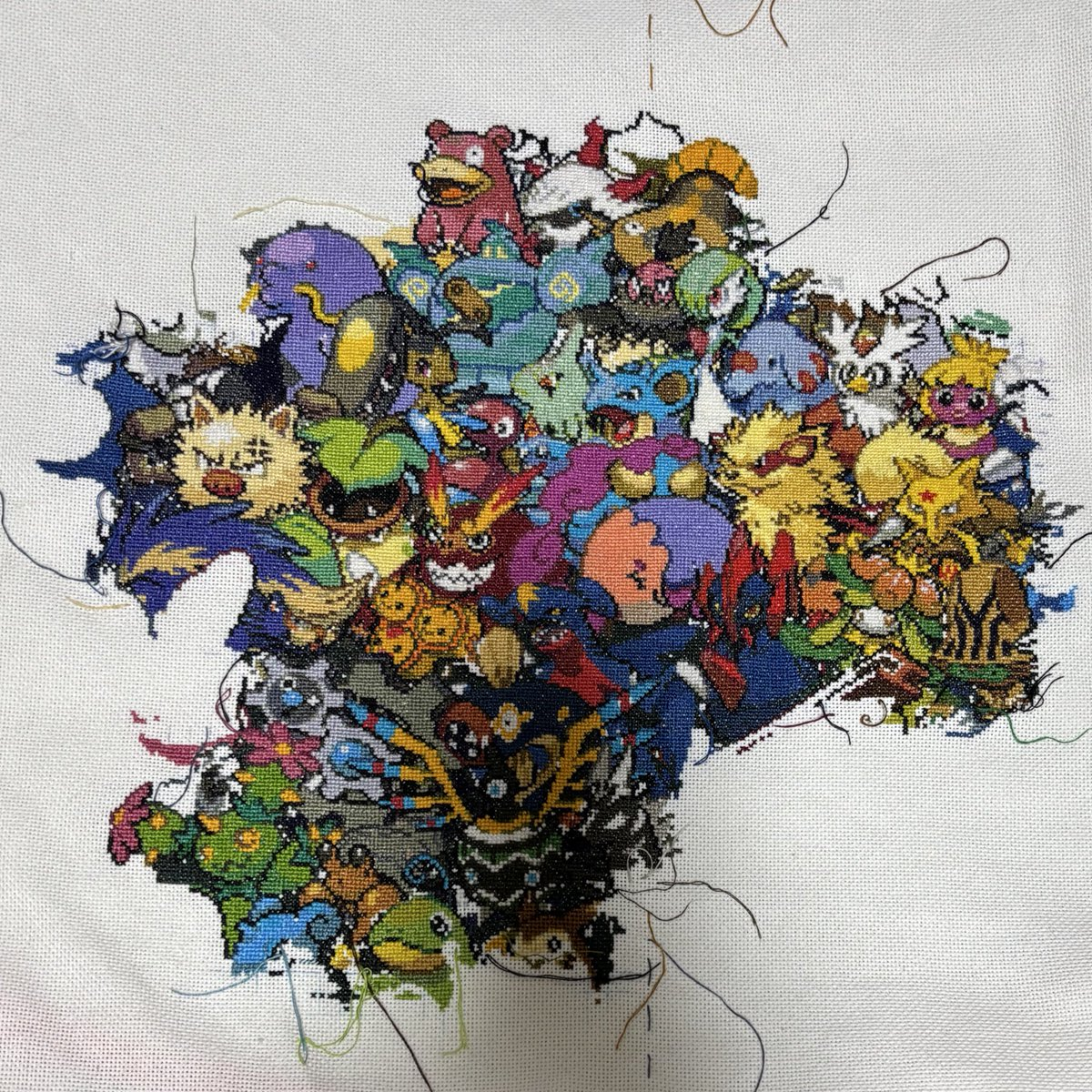 ゆう其實已經鑽研 「十字繡」長達 36 年。十字繡的技法是用線交錯刺繡成「×」字形,而這次的寶可夢刺繡靈感,來自於約十年前某位國外玩家在部落格上分享的作品。當時,這個概念在十字繡愛好者之間引起話題,讓她也興起挑戰的念頭,並於 2021 年正式開始動工。