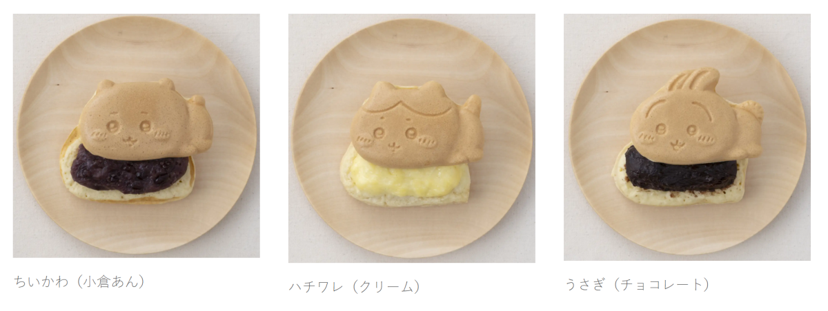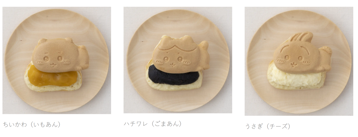 造型點心有著吉伊、小八、兔兔的三種造型,口味更有紅豆、奶油、巧克力、地瓜餡、芝麻餡、起司可以選擇。屆時會販售三入一組與六入一組,每人最多購買 6個(3入×2組 或 6入×1組),售價各為 1,050 日圓 & 2,100 日圓。
