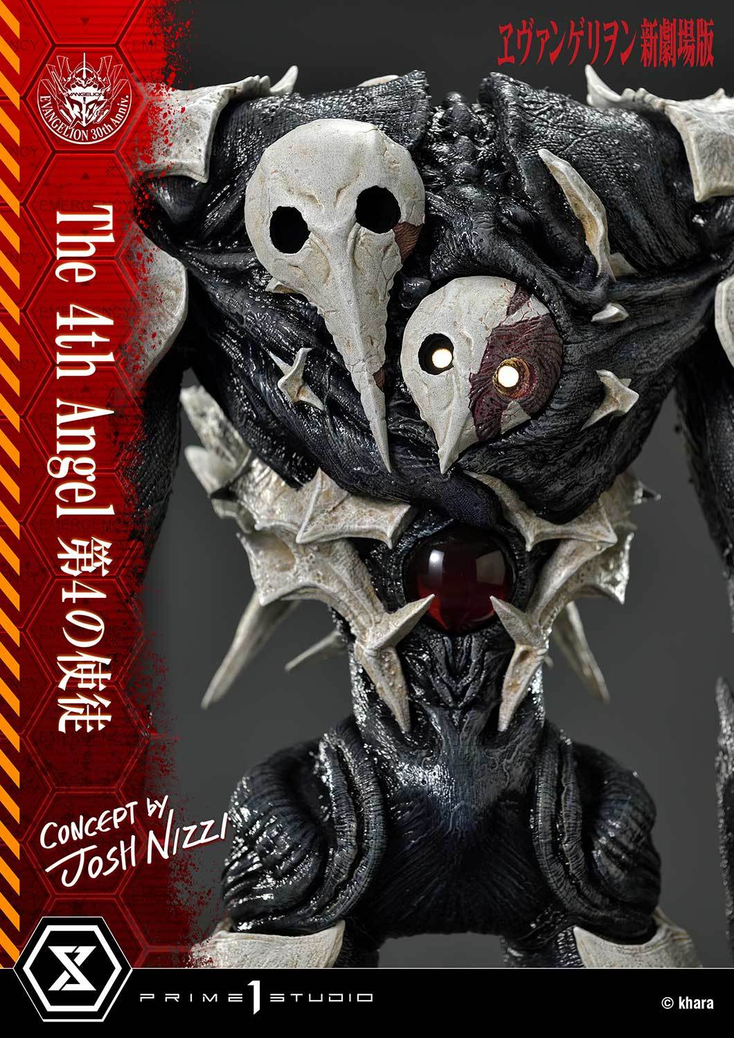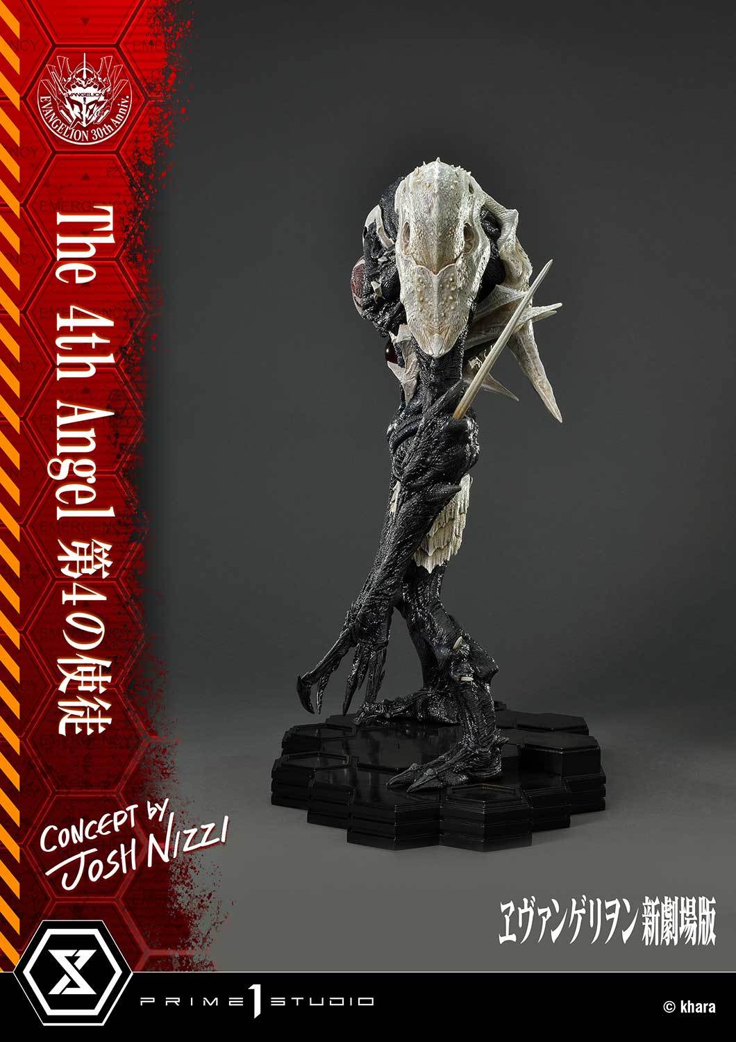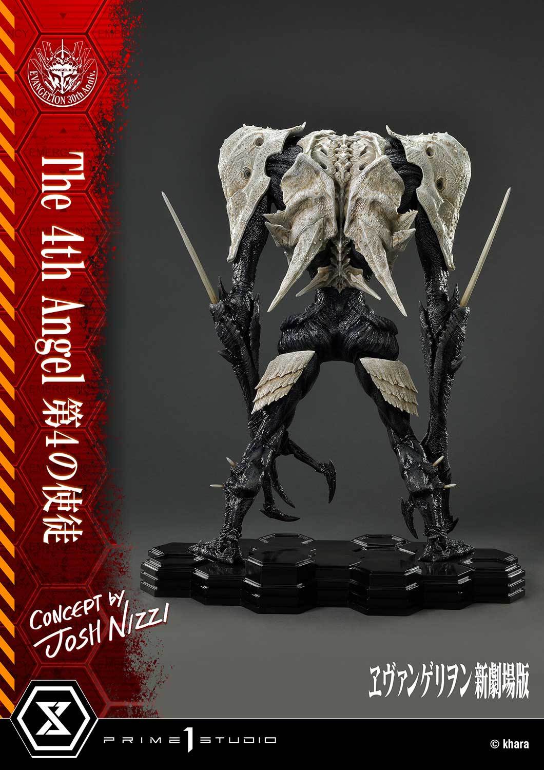本次Prime 1 Studio推出的第四使徒擁有約58公分高的巨大尺寸,繼三年前的「EVA 初號機 夜間戰鬥版」後再度請到知名造型師Josh Nizzi擔任概念設計,以獨特的風格將第四使徒現身時帶來巨大威脅的魄力場面立體化,白色外殼上覆蓋滿了細小的孔洞與類似氧化的斑駁痕跡,黑色本體則是點綴著錯綜複雜的紋理,閃耀著詭異的光澤,展現超越原作的寫實效果!