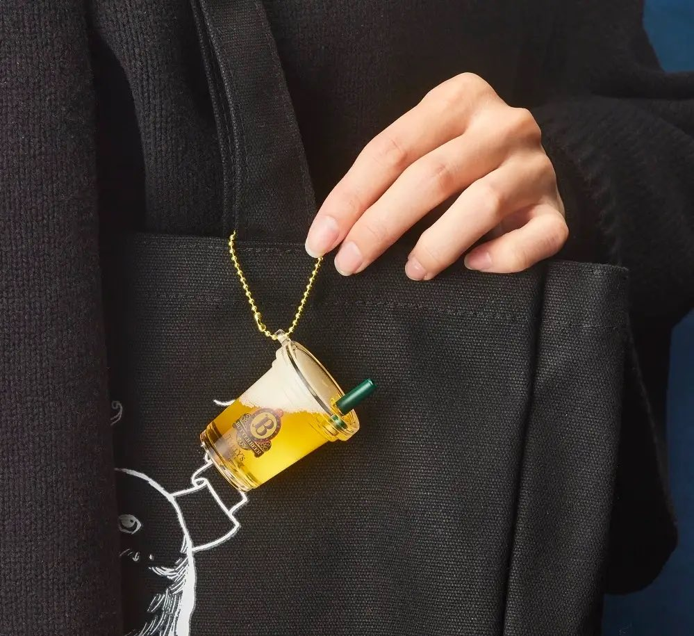 除了飲品,這次聯名還推出 「哈利波特奶油啤酒迷你吊飾」,只要額外加價 1,100 日圓,就能一起帶回家,