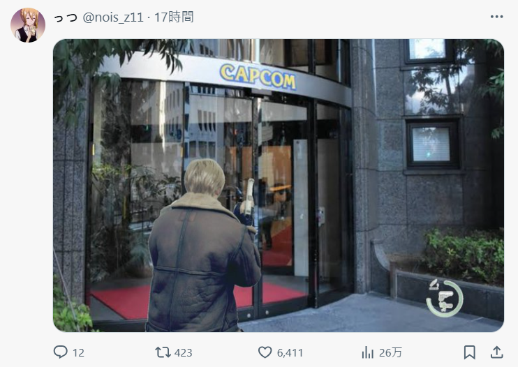 這個點子實在太有趣了!發文一出,短短不到一天便突破 10 萬個讚,玩家們紛紛開始玩起合成圖,各種里昂風景照迅速席捲 X 平台。畢竟只要加上里昂的背影,「隨處都能變成惡靈古堡」這樣的趣味,讓人又驚又喜!