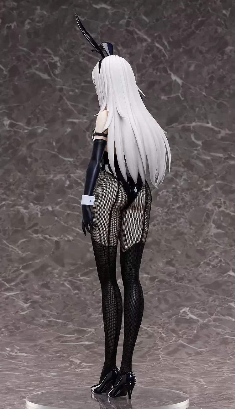 FREEing「B-Style 2A(寄葉A型二號)兔女郎Ver.」 1/4比例模型,尺寸高達 50 公分,採用系列原創兔女郎裝造型,以撩起銀白色長髮的魅力姿勢登場。兔女郎服油亮的漆面光澤,包覆著白皙纖細的身軀,開高衩的設計更是強調修長的腿部;使用真實材質呈現網襪,在網襪下的義體皮膚部分也細膩還原!冷冷的表情十分迷人~