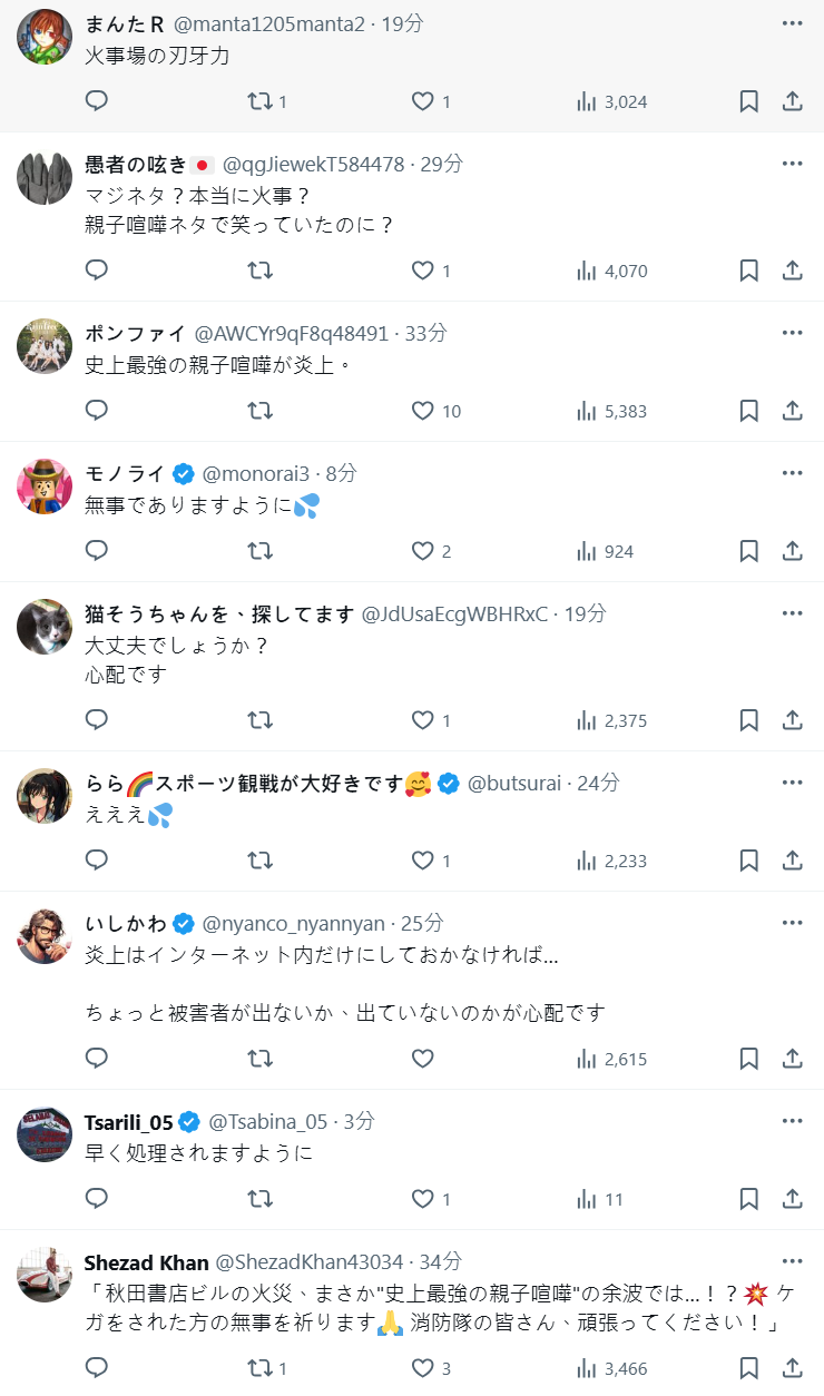 這消息一出,讓網友紛紛表示擔憂:「這情況沒辦法當作笑話看待了…」、「飯田橋火災,希望沒有人受困…」、「剛看到還以為是範馬親子的話題,結果竟然是真的起火,嚇壞了」、「希望現場一切平安」。