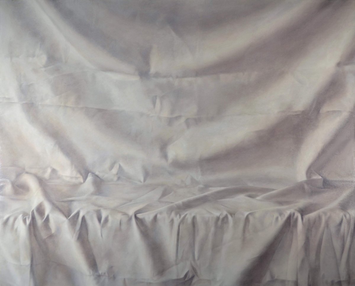 不過仔細看過後能發現兩幅作品給人的感覺都不一樣,2012年的畫感覺得到像是張布滿灰塵的布料,有種類似床單的感覺,皺褶和陰影也相當自然;2023年的畫作是張非常有光澤、質感很好的布料,可以想像得到摸起來有多細緻柔軟。