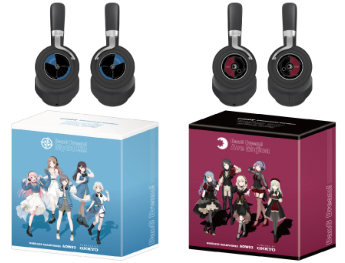 機型採用 ANIMA 頗受好評的 ANIMA AOW03 款式,當初就是以聆聽動漫歌曲打造的藍芽耳罩式耳機,可以對應有線與無線使用,對於喜歡聆聽音樂的朋友能更自由選擇想要的方式。耳機本體在外觀上兩側選用《BanG Dream!》MyGO & Ave Mujica 的色系與團徽配置,也都配有對應成員的盒裝。