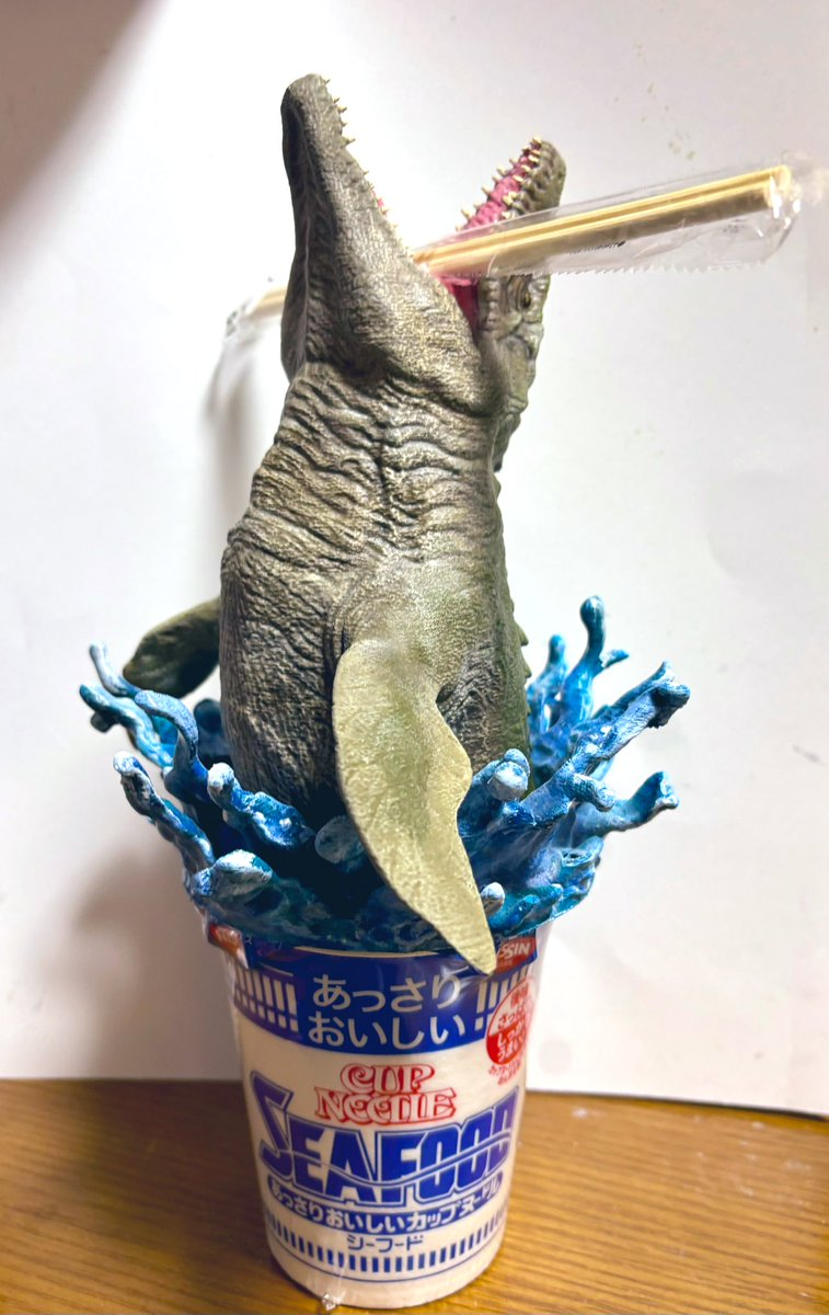 近日日本 X 上,有位專門製作怪獸造型的模型師「造形作家いち」(@iiiiiiii1ichi),分享了自己以「從水中豪邁躍起的滄龍」 造型泡麵蓋模型,逼真的水花、展開的鰭、滿口鋒利的牙齒,完美展現了滄龍的威嚴。充滿霸氣的設計也獲得網友大肆好評。