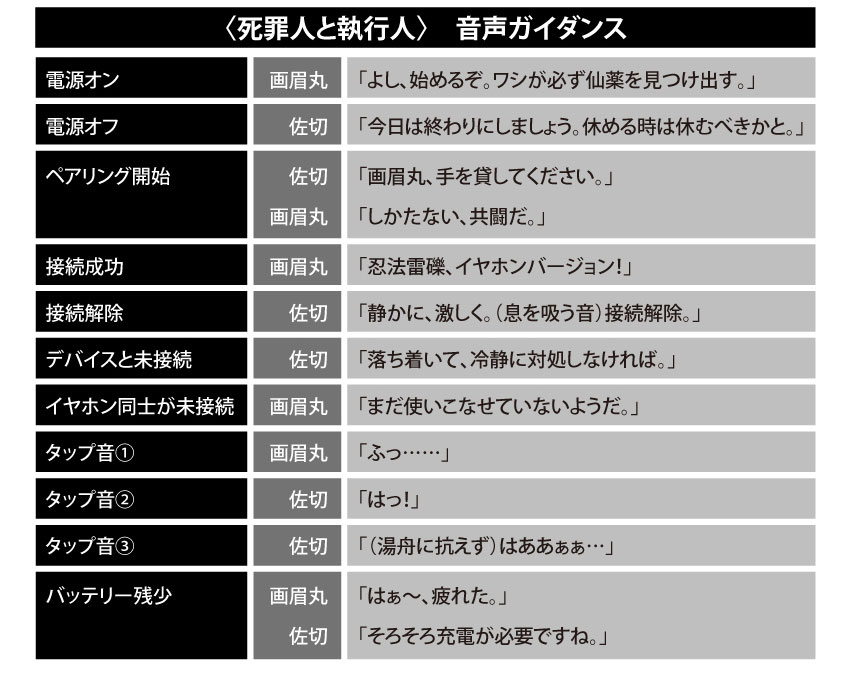 當然少不了的,就是由畫眉丸(CV:小林千晃) & 山田淺衛門佐切(CV:花守由美里)聲優所錄製的提示語音,使用者可以在耳機聽到角色跟你問好,陪伴你聽音樂的時光。