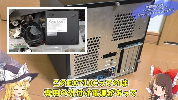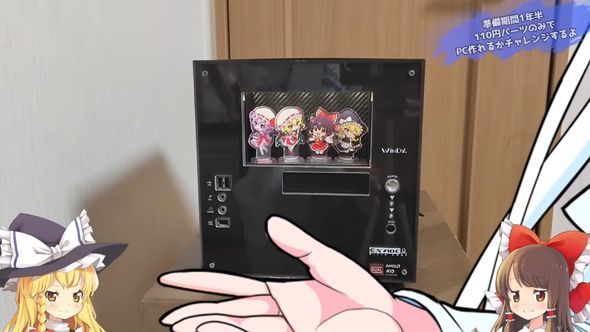 創作者花費 一年半的時間,以 110 日圓的價格收集到 PC 機殼、電源供應器、內建 CPU 和記憶體的主機板、Intel 原廠散熱器與 HDD,並嘗試將這些超低價零件組裝成可運作的 PC。