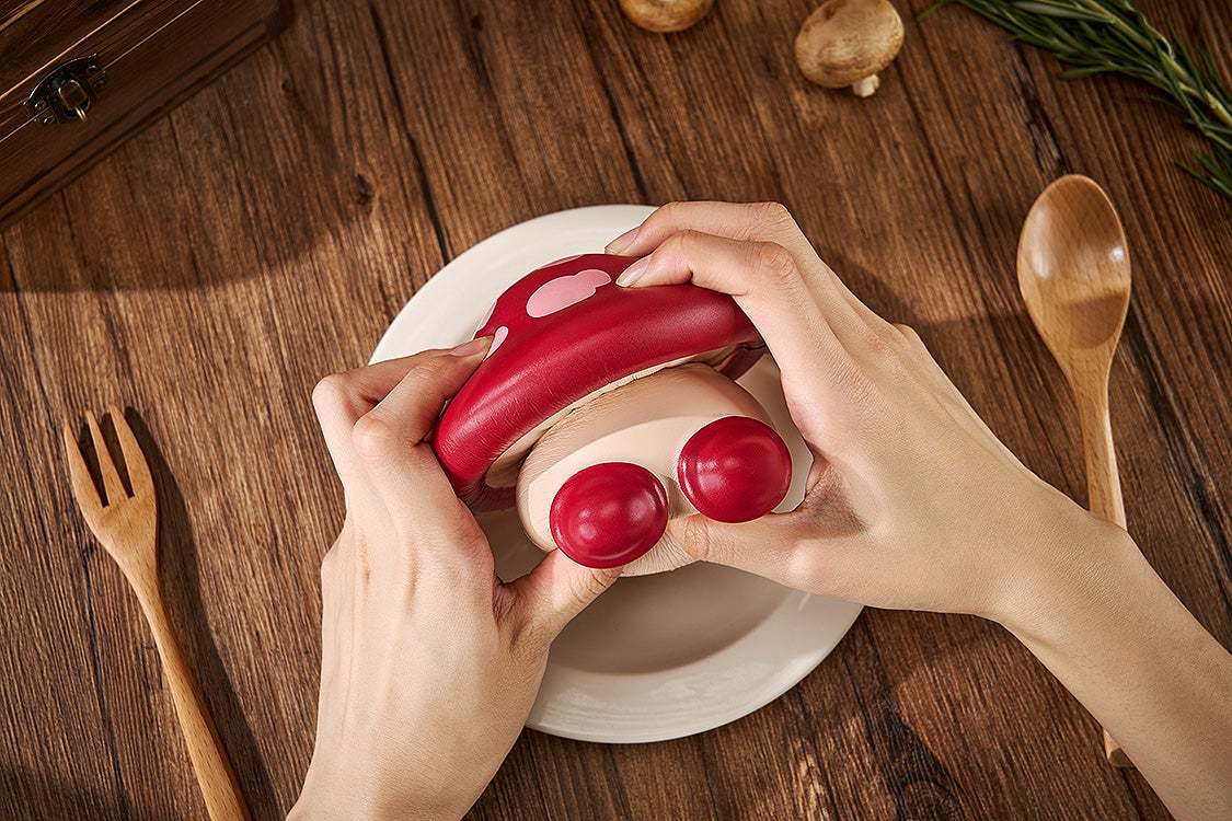 「走路菇」(歩き茸)是萊歐斯一行人第一個決定拿來當午餐的魔物,被煮成了大蠍子佐走路菇火鍋,根據先西的說法腳的部分相當美味!本次的走路菇低反發角色模型高約12公分,製作了走路菇坐下的模樣,還原標誌的紫紅色蕈蓋與上面的淡粉色點點造型,屁股上還印有迷宮飯標準字的圖樣!模型以低反發(低反彈)的特殊材質打造,可以盡情的揉捏,讓各位玩具人當作舒壓玩具!商品圖中坐在鍋子裡的樣子真的太可愛啦!