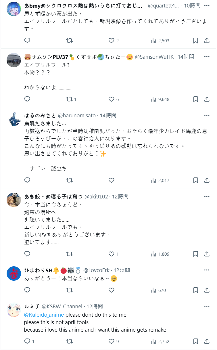 畢竟過去官方僅宣傳商品與活動為主,也沒有經營愚人節企劃的紀錄,不少粉絲殷殷期盼這個續篇可以成真,畢竟 20 多年過去了,真的老粉想看看成長後的故事,不是只是一個愚人節玩笑。