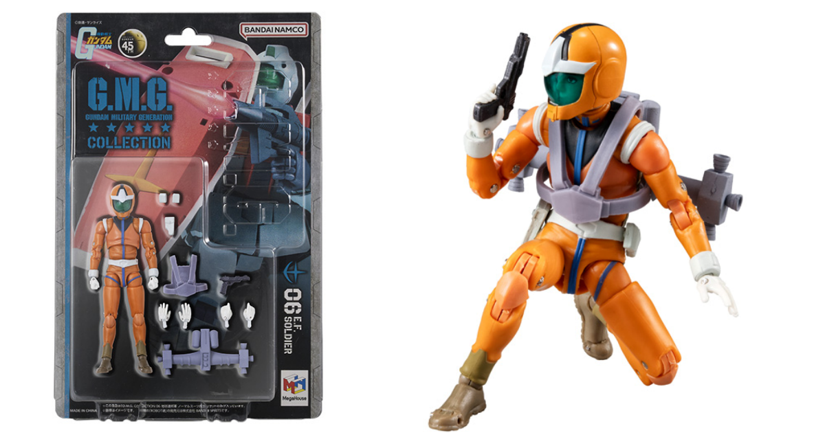 精選自「G.M.G.地球連邦軍 宇宙服士兵」,將人偶與配件拆出來獨立販售、價格更便宜的「G.M.G. COLLECTION 05 地球連邦軍 一般宇宙服士兵」,以 1/18 比例製作,在僅高約 10 公分的小尺寸中,製作出頭、雙臂、胸腰到腿部等多處可動關節,附有替換手勢零件與地球連邦軍 M71 制式手槍、推進背包等配件。除此之外,商品包裝也改為泡殼吊卡形式,更便於展示收藏!
