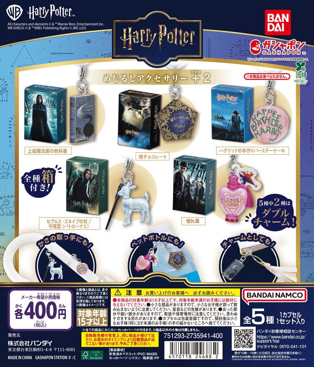 日本萬代公司轉蛋事業部GASHAPON推出了電影《哈利波特》系列主題的新商品——「哈利波特 標記吊飾+2」轉蛋,參考售價為每轉400日圓,預計於2025年04月第四週開轉!
