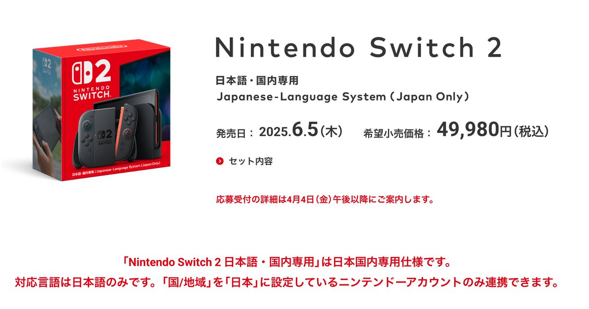昨日 ( 4/2 ) 任天堂於晚間舉辦的「Nintendo Direct」發表會上,公布了新主機Nintendo Switch2 的最新資訊,除了遊戲與預購方式引起討論外,這次日本國內版開價 49,980 日圓也引起討論。